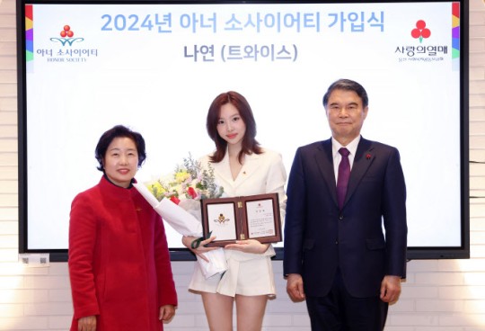 트와이스 나연이 사랑의열매 2024년 첫 아너 소사이어티 회원으로 가입했다.