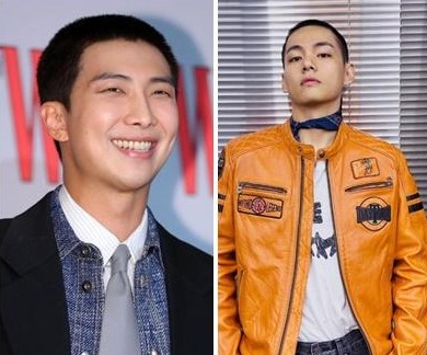 11일 입대한 그룹 방탄소년단 멤버 RM(왼쪽)과 뷔. 뉴시스, 위버스 캡처