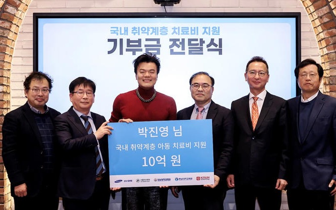 JYP엔터테인먼트수장 박진영은 고액의 수술비, 치료비로 어려워하는 취약계층 소아청소년을 위해 올해도 10억 원 통 큰 기부를 결정했다. 박진영의 사재를 출연해 마련한 기금은 서울 삼성서울병원을 비롯한 국내 지역 거점 병원 5곳에 각 2억 원씩 총 10억 원이 전달돼 온정의 손길이 필요한 아동에게 쓰일 예정이다.