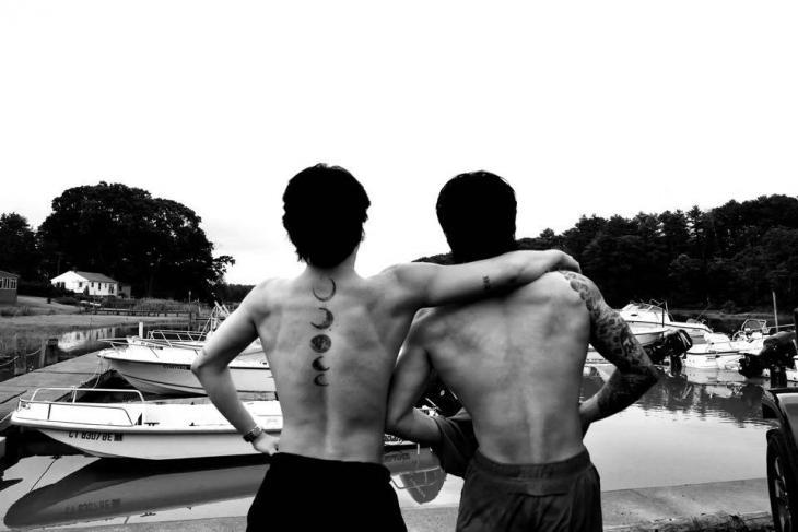 공개된 사진 속에는 어깨동무를 하고 있는 지민과 정국의 모습이 담겨 있다. 특히 역삼각형 몸매가 놀라움을 자아낸다.