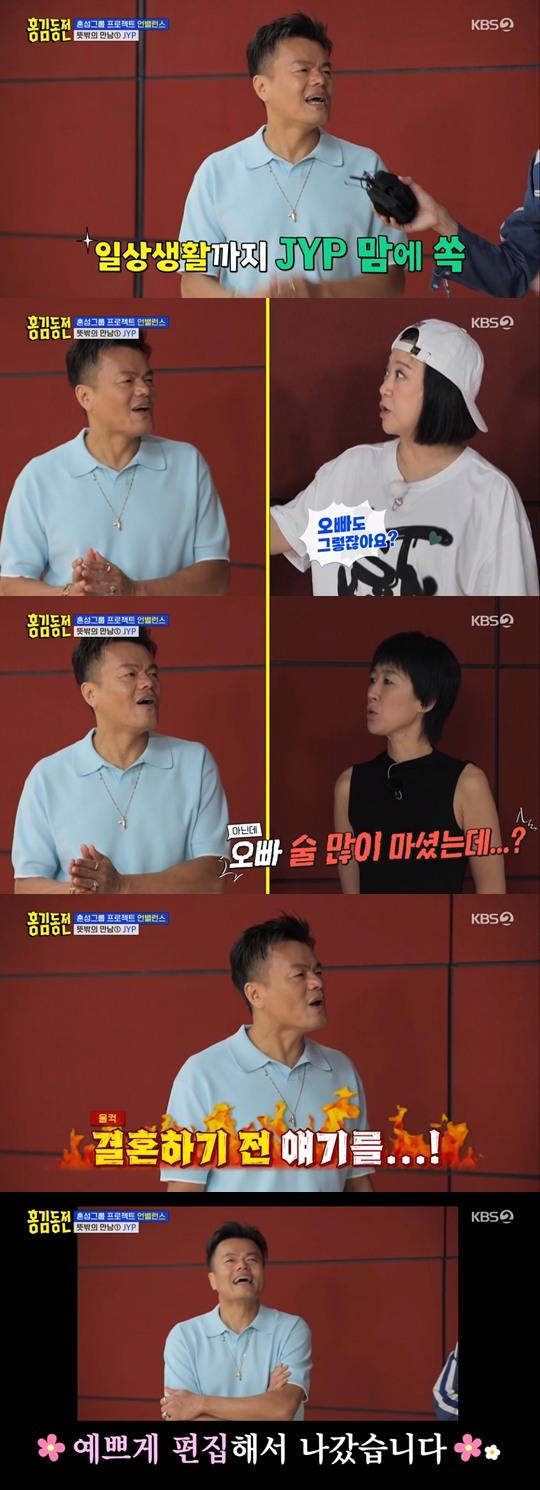 홍진경 "박진영, 결혼 전 나랑 술 많이 마셨다" 폭로...박진영 "편집해줘"('홍김동전') © 제공: 헤럴드POP