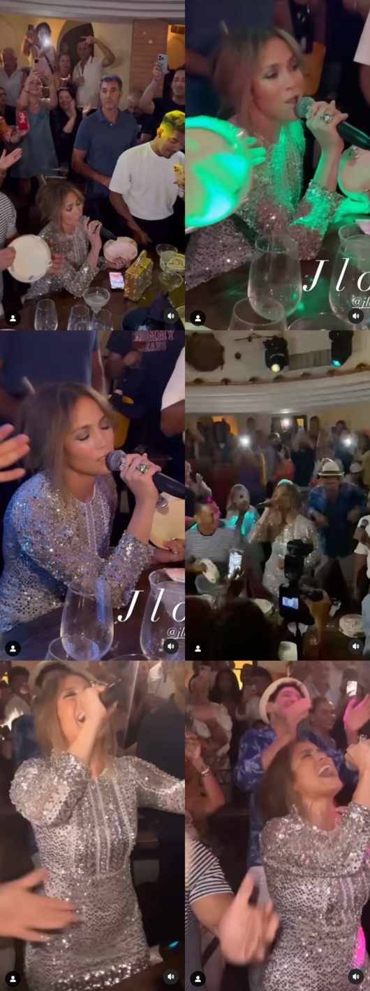 제니퍼 로페즈가 이탈리아의 술집에서 마이크를 잡았다.