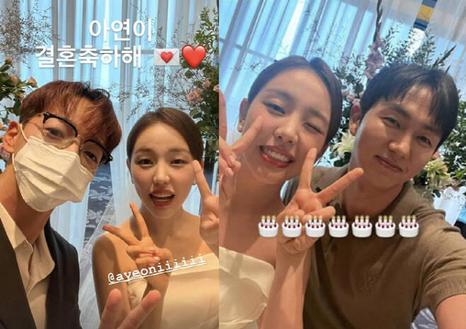 새신부가 되는 백아연의 앞날엔 JYP엔터테인먼트 식구들이 함께 했다. 2PM 준케이는 “아연이 결혼 축하해 ♥”라며 신부대기실에 있는 백아연과의 셀카를 공개했다. 임슬옹 역시 백아연과의 셀카로 결혼을 축하했다. 사진 속 백아연은 윙크를 하며 여유로워 보이는 모습. 선예와 유빈 역시 백아연의 결혼식에 참석했다. 오랜만에 만난 선예와 유빈은 함께 셀카를 찍으며 여전한 우정을 자랑했고 임슬옹은 이 모습을 공개하며 “동창회”라고 표현했다.