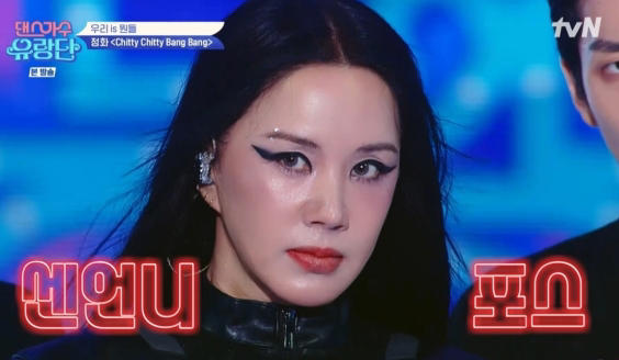 가수 엄정화가 후배 이효리의 히트곡 '치티치티뱅뱅(Chitty Chitty Bang Bang)' 무대를 펼쳤다.