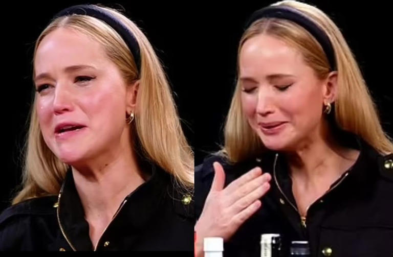 22일(현지 시간) 퍼스트 위 피스트 ‘Hot Ones(핫 원스)’에 출연한 제니퍼 로렌스(32)는 오열하며 콧물까지 쏟아야 했다. 그는 매운 음식을 먹고 패닉 상태에 빠져 있었다.