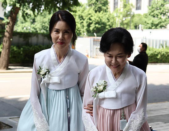 이어 여배우들 또한 포착됐다. 이정현은 트렌치 코트로 단아함을 뽐냈으며, 신애라는 가디건과 롱 스커트를 매치해 하객룩 센스를 발휘했다.