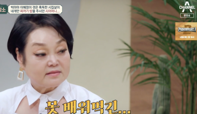 '오은영의 금쪽 상담소'에서 이혜정이 의사집안인 시댁에서 찬밥신세였던 과거를 언급, 45년째 아물지 않은 상처를 전했다.