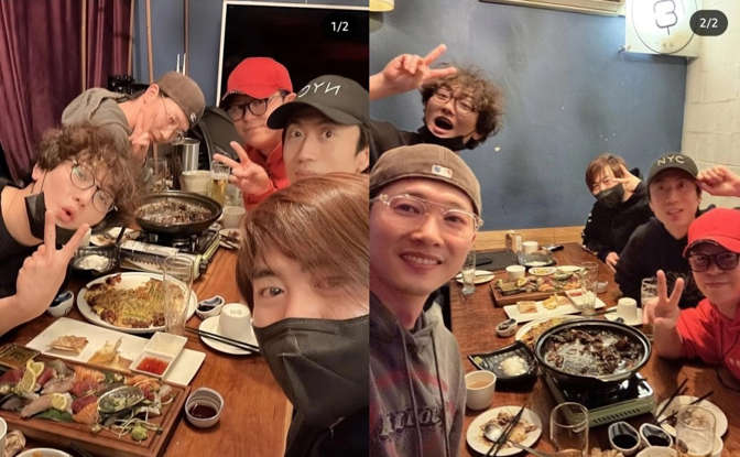 다섯명은 카메라를 향해 장난기 가득한 미소를 지어 보이고 있어 화기애애한 식사 자리를 엿볼 수 있게 했다.