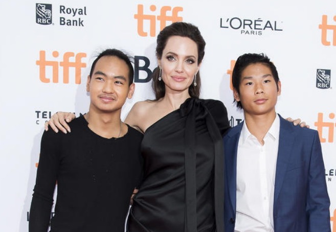[토론토=뉴시스] 할리우드 배우 앤젤리나 졸리(가운뎨), 큰 아들 매덕스 졸리-피트(왼쪽)과 팩스 졸리 피트(오른쪽) © 뉴시스
