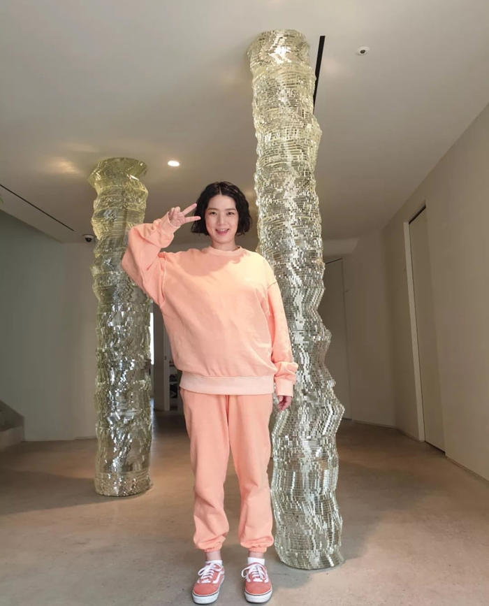 공개된 사진에서 안영미는 분홍색 맨투맨 세트업을 입고 카메라를 향해 웃고 있다. 그는 만삭으로 인해 맞는 옷이 없다고 토로, 옷을 선물해준 신봉선에게 고마움을 전했다.