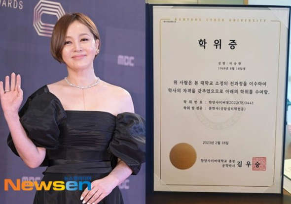 배우 이승연이 심리상담학 학위를 취득했다.