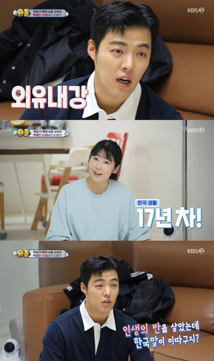 외유내강이라고 정정해준 강남은 사유리에게 앞으로 젠 교육을 어떻게 할 거냐며 나무랐다. 한국 생활 17년 차라는 사유리에 그는 “17년? 인생의 반을 살았는데 한국말이 이따위지?”라고 디스했다.