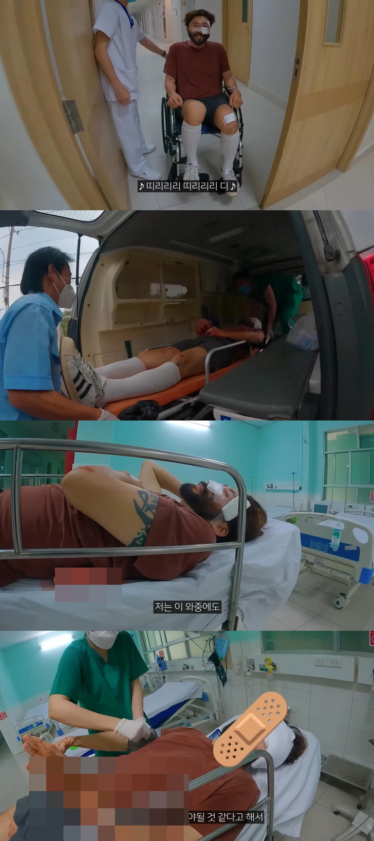 노홍철이 누운 병원 침대는 피로 흥건했고, 이후 휠체어까지 타고 수술을 받았다. 빠니보틀은 "사고 수습에 도움을 주신 베트남 현지분들, 코이티비의 코이님과 직원분들, 오토바이 판매직원 Bao, 여행을 지원해주신 여기어때, 그리고 탈모와뚱보와털보 시리즈를 재밌게 봐주신 시청자 여러분께 감사 인사를 드립니다"라고 인사했다.