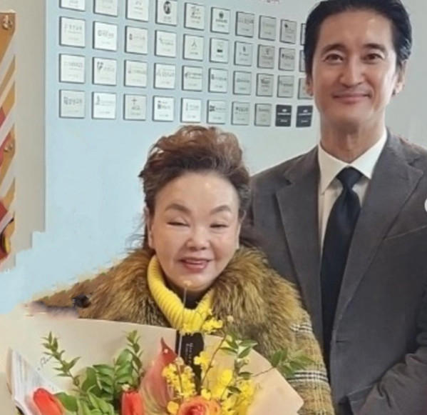사진 속 신현준은 꽃다발을 든 김수미 옆에 서 환한 미소를 짓고 있다. 김수미의 새 출발을 축하하는 모습이 훈훈함을 자아냈다.