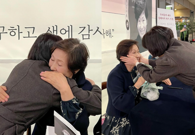 공개된 사진은 한지민이 선배 배우 김혜자의 사인회에 깜짝 방문한 모습. 한지민의 방문을 몰랐던 김혜자의 놀란 모습도 포착됐다. 한지민은 그런 김혜자의 놀란 마음을 달래주듯 포옹하거나 얼굴을 감싸는 등 살가운 모습으로 챙기기도. 마치 딸처럼 살뜰히 선배를 챙기는 모습이 훈훈함을 자아낸다.