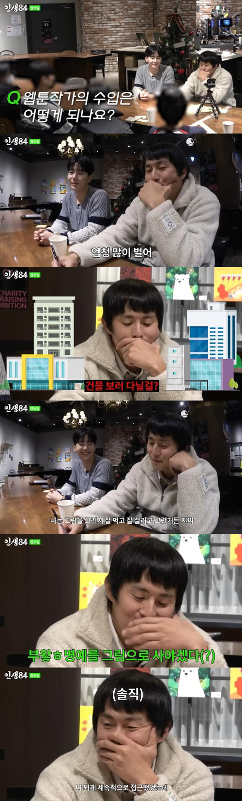 웹툰작가의 수입을 묻자 기안84는 “엄청 많이 번다”면서 “건물 보러 다닐 걸”이라고 상당한 수익을 올릴 수 있다는 희망을 전했다.