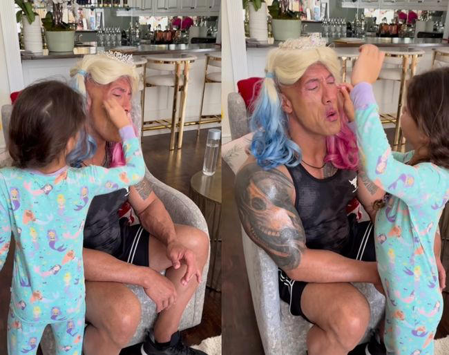 • '딸아빠' 드웨인 존슨, 강제 공주분장..'블랙아담' 폭망에도 웃는다