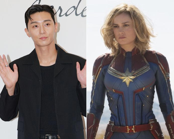 배우 박서준(왼쪽)과 '캡틴 마블' 역할의 브리 라슨. /뉴스1, 네이버 영화 스틸컷© 제공: 조선일보 문지연 기자