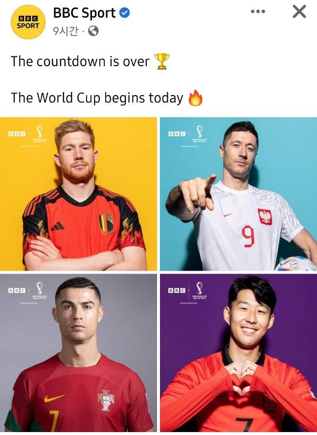 영국 공영방송도 2022 카타르 월드컵 시작을 알리는 SNS에 손흥민을 등장시켰다.