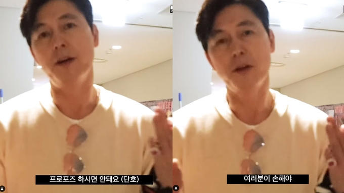 공개된 영상에는 정우성이 “또 프러포즈 당했어요. 여러분… 프러포즈 하시면 안 돼요. 여러분이 손해야. 프러포즈 하면 안 돼, 안 돼! 금지된 사랑”이라고 말하는 모습이 담겨 있다. 특히 영상 속 정우성은 진심으로 난처한 표정을 지어 웃음을 자아냈다.