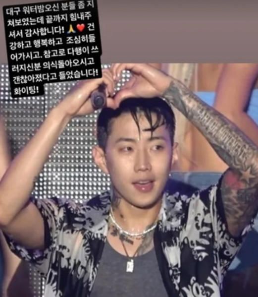 후속 상황도 전했다. 이날 자신의 소셜 미디어에 "대구 워터밤 오신 분들 좀 지쳐 보였는데, 끝까지 힘내주셔서 감사하다. 참고로 다행히 쓰러지신 분 의식 돌아오고 괜찮아졌다고 들었다"고 썼다.