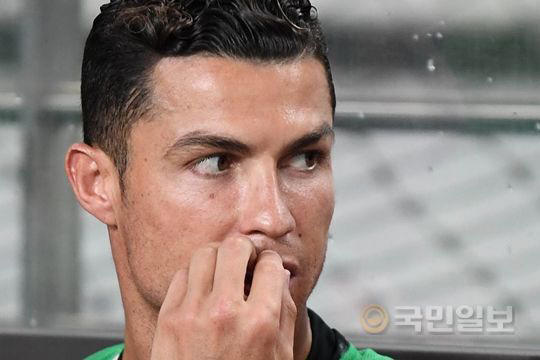 © Copyright@국민일보         크리스티아누 호날두가 이탈리아 프로축구 세리에A 유벤투스 소속으로 방한했던 2019년 7월 26일 서울월드컵경기장 대기석 벤치에 후보용 조끼를 입고 앉아 있다. 당시 호날두는 출전하지 않았다. 국민일보 DB