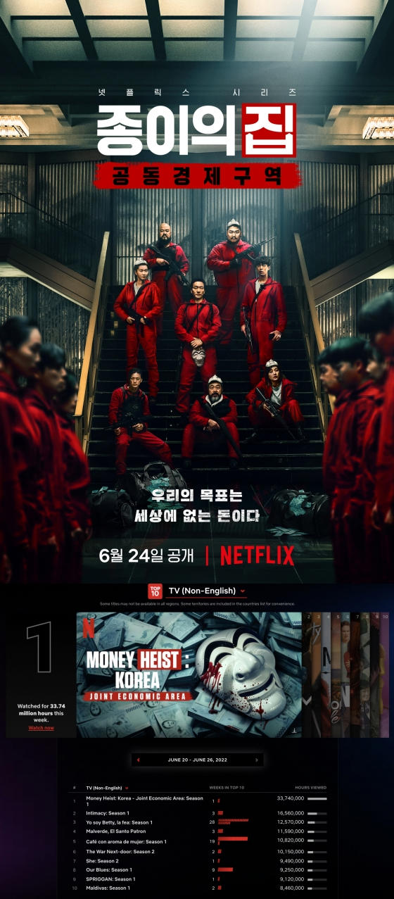 한국판 '종이의 집', 글로벌 TOP 10 TV 비영어 부문 1위