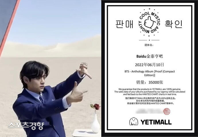 ‘바이두 뷔바’ 측에 따르면 이는 ‘프루프’ 앨범 팬덤 공동구매 1위 기록일 뿐 아니라, 중국 팬덤 공동구매의 40%에 해당하는 물량이다.