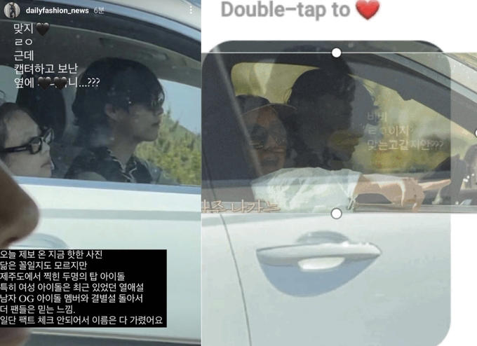 해당 게시글 작성자는 “오늘 제보 온 핫한 사진“이라며 “닮은 꼴일지도 모르지만 제주도에서 찍힌 두명의 탑 아이돌, 특히 여성 아이돌은 최근 있었던 열애설 남자 OG 아이돌 멤버와 결별설 돌아서 더 팬들이 믿는 느낌. 일단 팩트 체크 안 되어서 이름은 다 가렸어요”라고 적었다.