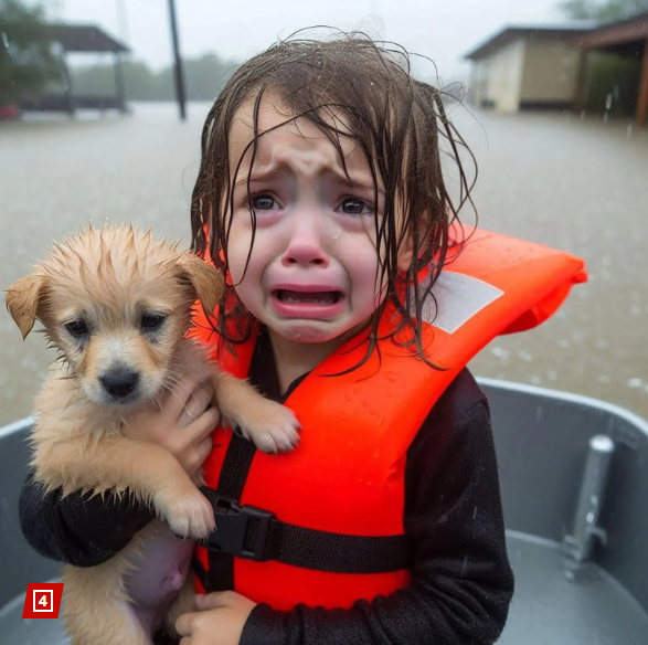 한 아이가 미국을 강타한 허리케인 헐린으로 인한 수해 현장에서 강아지를 꼭 안은 채 흐느끼고 있습니다.