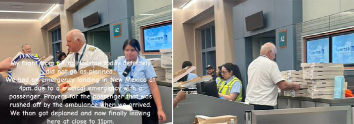 공항에서 장시간 대기 중인 승객들에게 피자를 선물하는 비행기 기장의 모습이 공개돼 화제다.