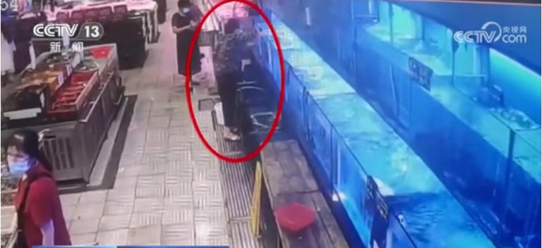 중국 마트에서 활어를 직접 잡다가 손가락 상처를 입은 여성이 피부가 괴사되어 마트를 상대로 손해배상청구소송을 냈다. 사진 출처 CCTV13 뉴스