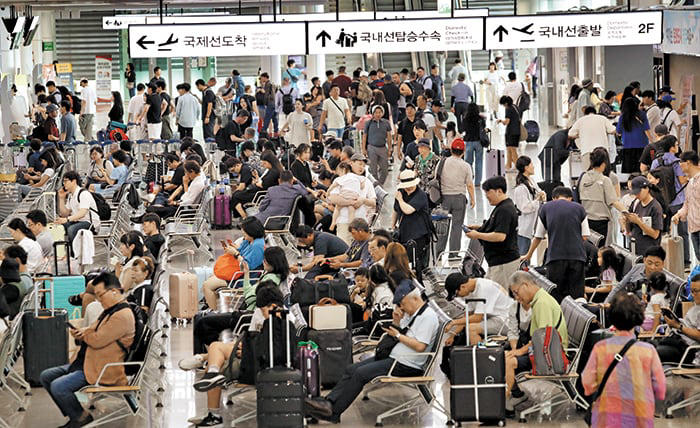 청사 안 편의점과 식당에는 대기 줄까지 생겼다. 편의점 직원은 “예전에는 중국인 단체 관광객뿐이었는데 요즘은 성수기·비수기 가릴 것 없이 매일 제주나 해외로 나가려는 사람들로 북적인다”고 했다.