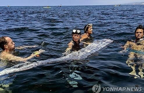 지난 10일 캘리포니아 라호이아 코브 해안에서 죽어 있는 산갈치가 인근에서 카약을 타거나 스노클링을 하던 사람들에 의해 발견됐다.