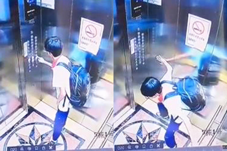 공개된 영상에 따르면 11세 소년 위안위안(Yuanyuan)은 한 남성과 함께 엘레베이터에 타고 있었다.
