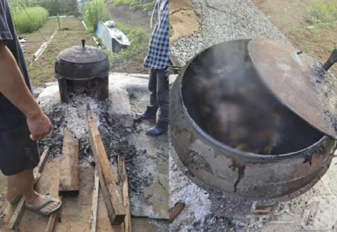 당시 A씨의 가마솥을 열어보니 개로 의심되는 동물 사체가 새까맣게 탄 상태였고, 이를 본 B씨가 경찰에 신고했지만 그 사이 가마솥은 텅 비어 있었다.