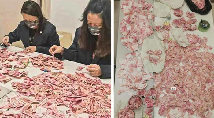 중국의 한 은행에서 10만 조각 이상으로 잘린 지폐를 이어 붙여 화제다.