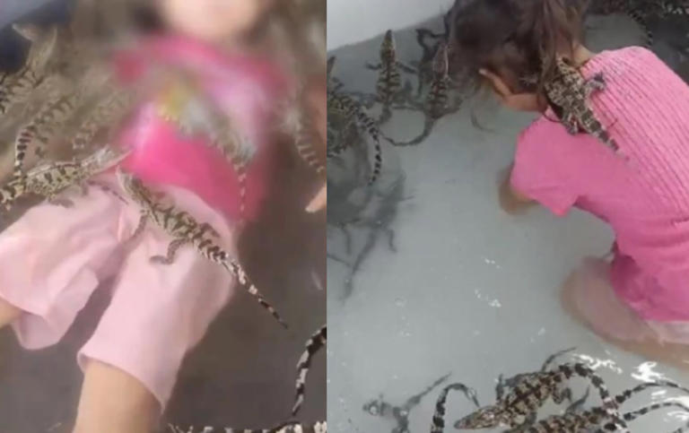 4세 소녀가 물속에서 새끼 악어 200여 마리와 놀고있는 모습 공개