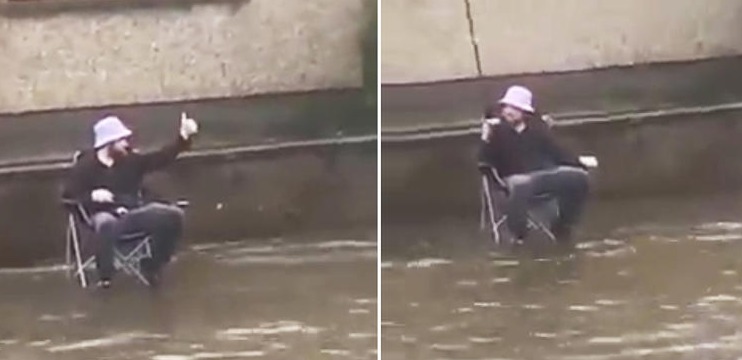 홍수 속 낚시하는 남성...우울한 상황에도 웃음 선사해 화제