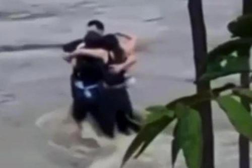 급류에 갇힌 세친구 휩쓸리기 직전 '마지막 포옹'