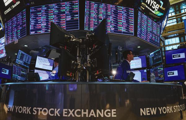 뉴욕증시에서 트레이더들이 시황을 살펴보고 있다. [로이터]