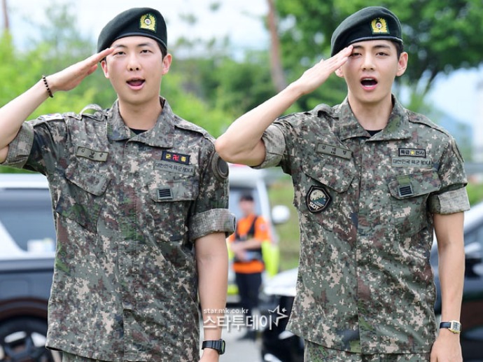 이날 오전 RM은 강원도 화천군 육군 제15보병사단에서, 뷔는 강원도 춘천시 육군 제2군단에서 전역했다.