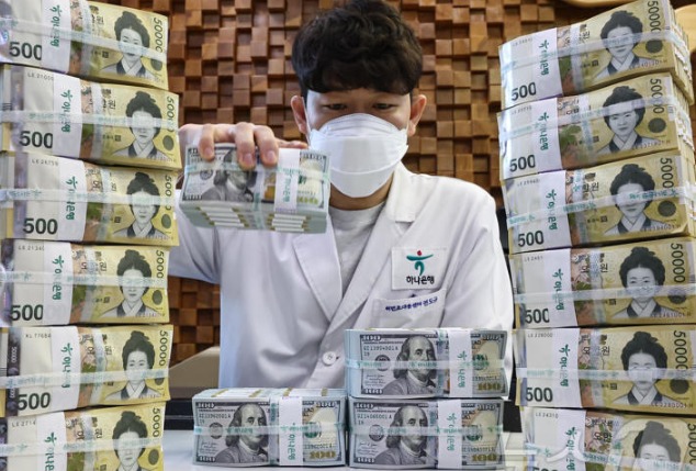 17일 서울 중구 하나은행 위변조대응센터 직원이 달러와 원화 지폐를 살펴보고 있다. 사진은 기사 내용과 무관. 2025.4.17/뉴스1 ⓒ News1 김도우 기자