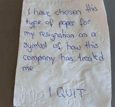 사진 속 화장지에는 "회사가 나를 어떻게 대했는지를 보여주기 위해 사직서를 화장지에 썼다. 회사를 그만둔다"는 문구가 적혀 있다. 다만 이 사진이 실제 사직서인지 상징적인 연출인지 여부는 알려지지 않았다.
