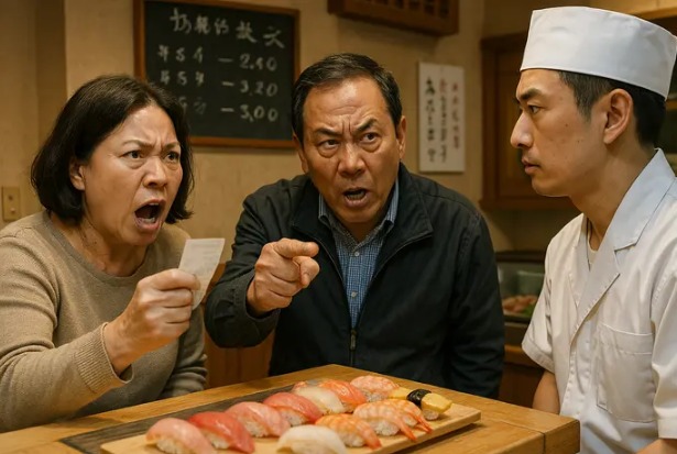초밥집에 온 중년 부부 손님이 가격이 다르다며 항의하는 모습을 챗GPT에 요청했다. 사진과 기사는 관련 없음. [사진 = 챗GPT]