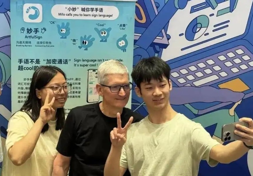 팀 쿡 애플 CEO가 딥시크의 창업자 량원펑의 모교인 저장대학교를 깜짝 방문했다./웨이보
