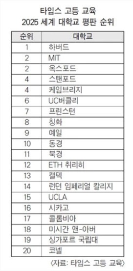영국의‘타임스 고등 교육’(The Times Higher Education)이 18일, 2025 세계 대학 평판 순위를 발표했다. 이 순위는 타임스 고등 교육이 발표하는 기존의 세계 대학 순위와는 별개의 지표로, 주로 역사, 연구 문화, 외부 참여도, 캠퍼스 환경, 학문적 전통 등 주관적인 요소를 기준으로 산정된다. 타임스 고등 교육은 이 외에도 도서관 자료, 재정 지출, 우수 박사 학위 졸업자 수 등 여러 가지 요소를 참고하여 순위를 결정한다. 타임스의 대학 평판 순위 상위권에 포함된 대학들은 연구와 학습, 근무 환경에서 우수한 성과를 거두고 있어 학자들과 학생들 모두에게 긍정적인 평가를 받고 있으며 전 세계 학생들과 교육 기관들이 이 순위를 중요한 참고자료로 활용하고 있다.