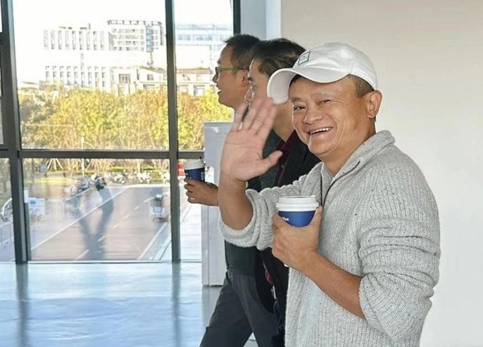 마윈이 지난달 29일 저장성 항저우의 알리바바 본사를 방문해 활짝 웃으며 손을 흔들고 있다.(사진 SCMP) 2024.12.20. © 뉴시스