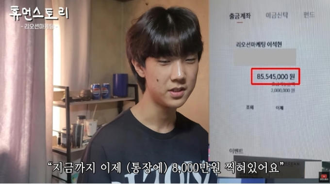 이군은 23일 공개된 유튜버 휴먼스토리와 인터뷰에서 자신의 사업 내용과 매출액을 공개했다.