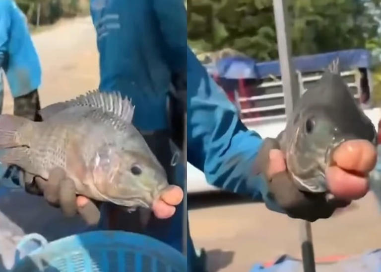 태국에서 비정상적으로 부풀어 오른 주둥이를 가진 틸라피아가 발견돼 화제다.